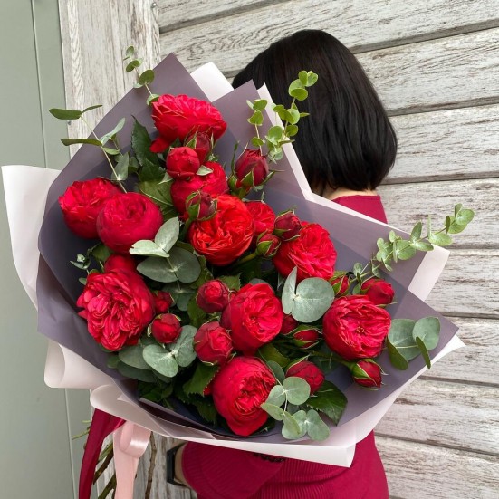 Роза кустовая пионовидная красные 9 шт.