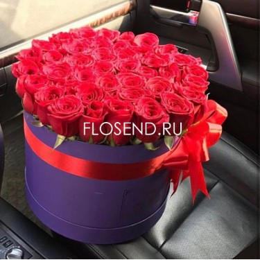 35 роз в шляпной коробке